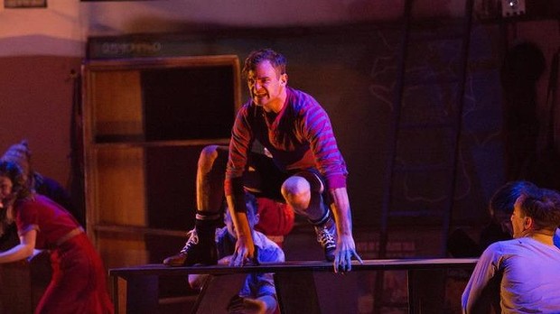 The setting seems to be a battered school bomb shelter in 1940s’ London, where students are given Shakespeare to distract them from what is going on outside. This becomes much more than a setting. The resulting tensions and the physicality of the performances deeply support the play’s meanings.